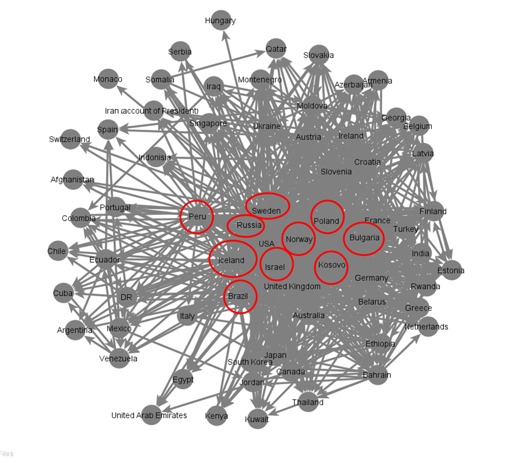 3. Your sample looked at the accounts of Ministries. That means, accounts managed by officials based in their own capitals. I think your research could be expanded if you look at multilateral hubs. At the UN in New York for example, numerous Missions have twitter accounts, follow each other and re-tweet each other, especially on issues of common interest. UNSC members often follow each other not only as part of their diplomacy but as intelligence gathering. I would not be surprised if that is also the case in Geneva, Vienna, The Hague, Brussels, Addis. Another place of interest might be DC. I definitely think that the interest of states is more diversified in these fora and may not mirror the digital behaviour in capital, so I am looking forward you replicating your experiment in multilateral settings.