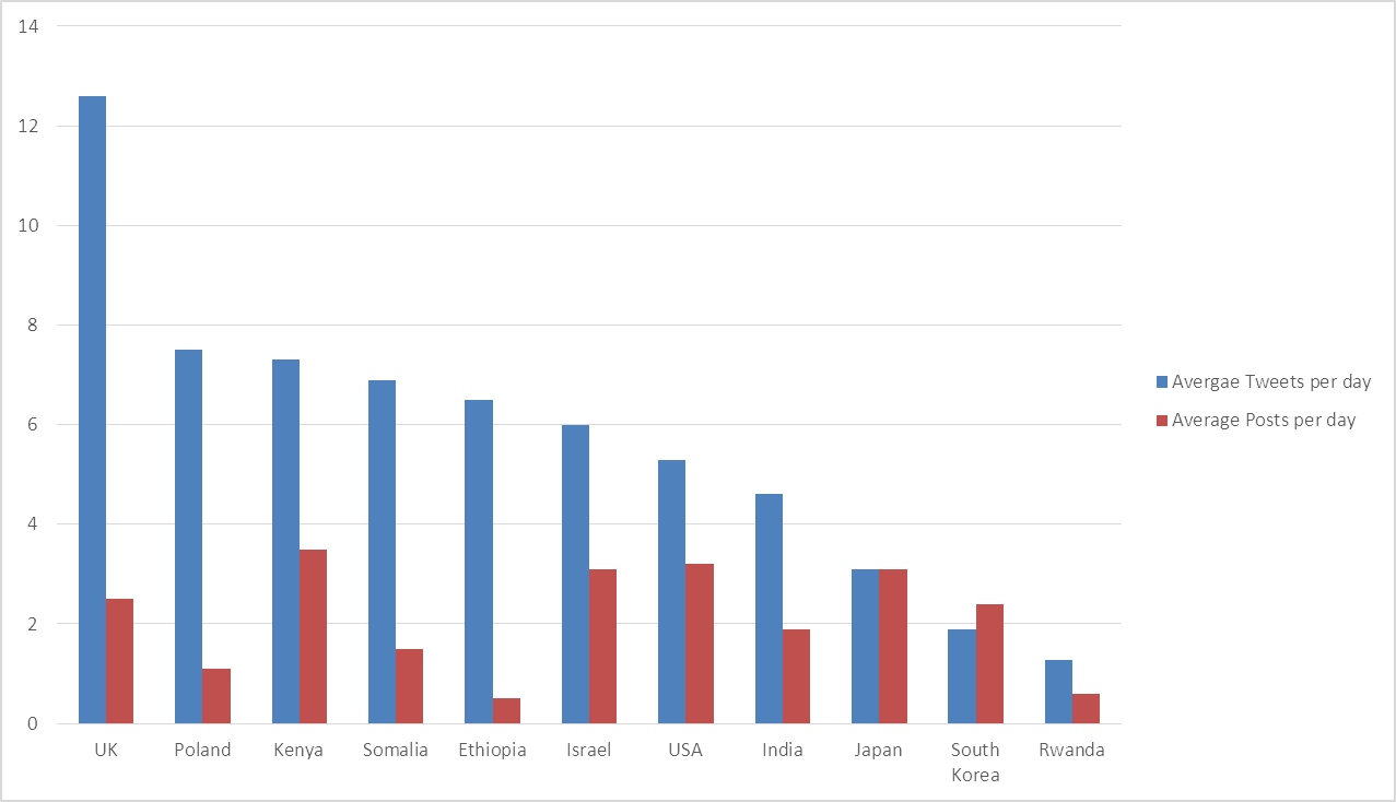 Graph 1: Average daily number of tweets and Posts published by MFAGraph 1