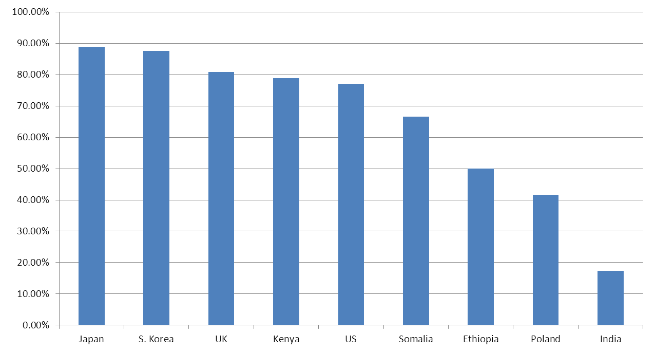 While some African countries have narrowed this gap in recent years, such as Kenya that has an internet penetration rate (% of population) of 47.3%, other African countries still lag behind the rest of the world. These include the Ivory Coast (4.2% penetration), Eritrea (5.9%), Ethiopia (1.9%), Rwanda (9.0%).  As a whole, Africa has a penetration rate of 26.5% as opposed to Europe’s 70.5% and North America’s 87.7%.