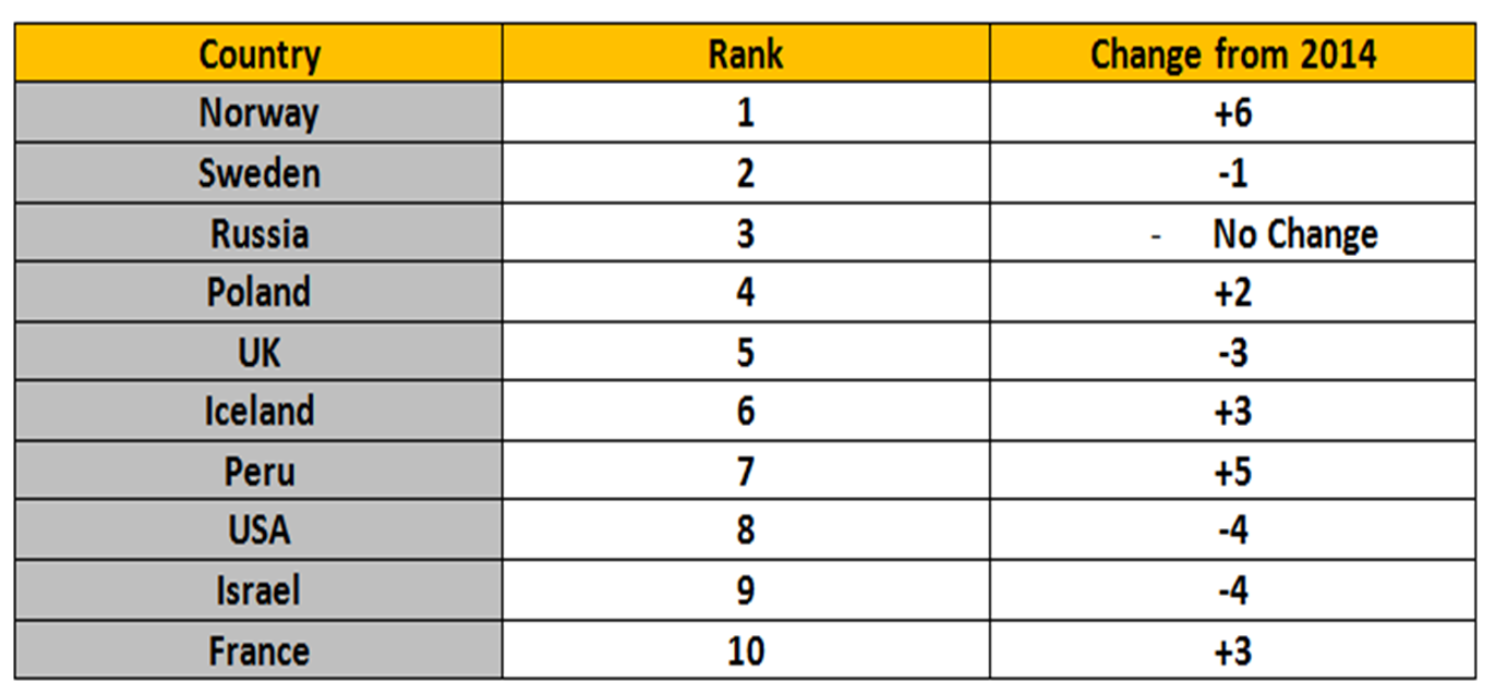 There are only four countries that received top 10 scores in all three parameters. The 2015 digital diplomacy A-Team is: Norway, Sweden, Russia and Israel. It should be noted that Russia, Israel and Sweden were also part of the 2014 A-Team. Thus these three nations continue to solidify their role as leaders in digital diplomacy.