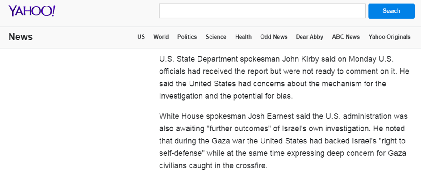 The first to comment on this report were media outlets throughout the world. Within one hour of the report’s publication on twitter, its main findings were published by Israeli, French, Spanish, British, American, Indian and Australian news sites. From Israel’s Haaretz newspaper to France’s Le Monde and Australia’s Sydney Morning Herald, the UN Commission’s findings that war crimes may have been committed by Israel and Hamas alike made headlines.