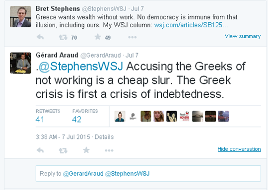 Another form of curating, often employed by France’s ambassador to the US, is sharing analysis and information with followers. Such information may not have been authored by the ambassador but by sharing it he is endorsing this information.