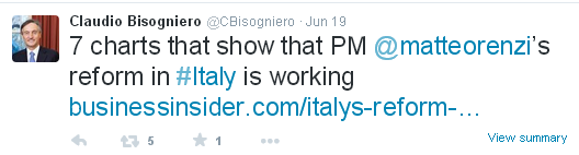 Finland’s ambassador to the US published a tweet according to which her country was the least fragile one according to a new index while the Italian ambassador shared articles portraying Italy’s Prime Minister, Matteo Renzi, as “young and idealistic”. The Italian ambassador’s use of such links may be an attempt to associate brand Italy with brand Renzi.