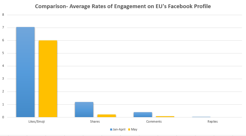 As the graph below indicates, the new social media campaign actually garners less engagement than regular EU posts published between January and April.