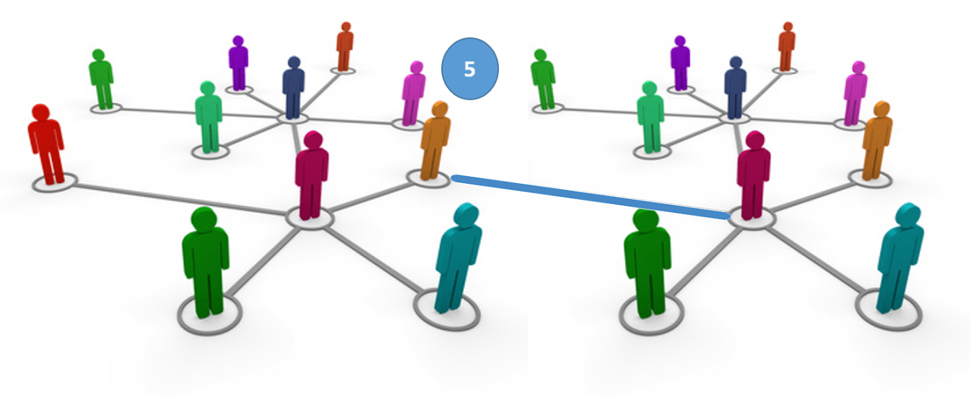 In other words, Network Gatekeepers are individuals that sit at the intersection between several networks. It is through these individuals that content passes from one network to another. For instance, in the illustration below, nodes 5 is a Network Gatekeepers.