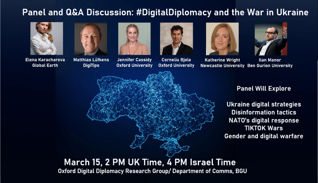 This post has reviewed but a few of the digital innovations brought about by the brutal Russian war in Ukraine. Yet these digital firsts will soon be emulated by states, activists and armed groups across the world over. As Hannah Ardent famously stated: everything that has a precedent is destined to be repeated. I shall be discussing other digital innovations in a special webinar on Tuesday, March 15, at 2 PM UK Time. See details below, and register at this link- https://www.eventbrite.com/e/panel-and-qa-discussion-digitaldiplomacy-and-the-war-in-ukraine-tickets-293638910887