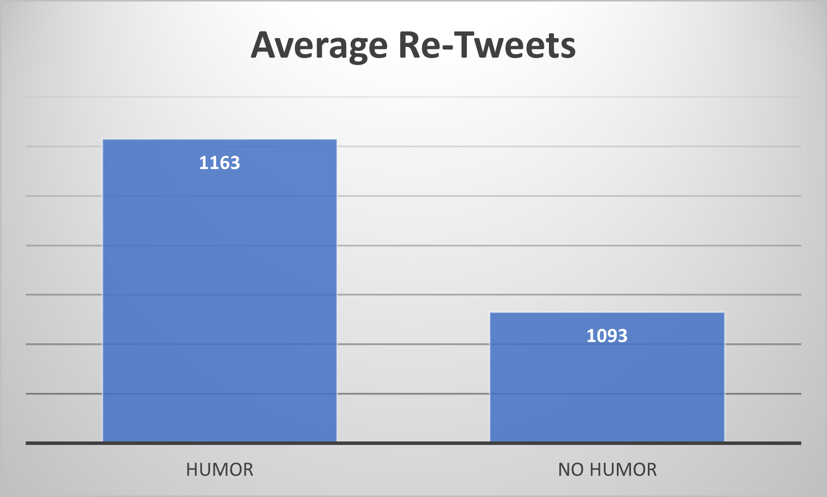 As can be seen in the three graphs below, humorous tweets elicited more re-tweets, more favorites, and more comments than non-humorous tweets. The gap in the average number of comments is especially important. Commenting on a tweet is the most demanding form of social media engagement. It requires that users stop scrolling, formulate a comment and share that comment publicly with all their followers. Comments may thus indicate that a tweet did in-fact elicit an emotional response, be it positive or negative.