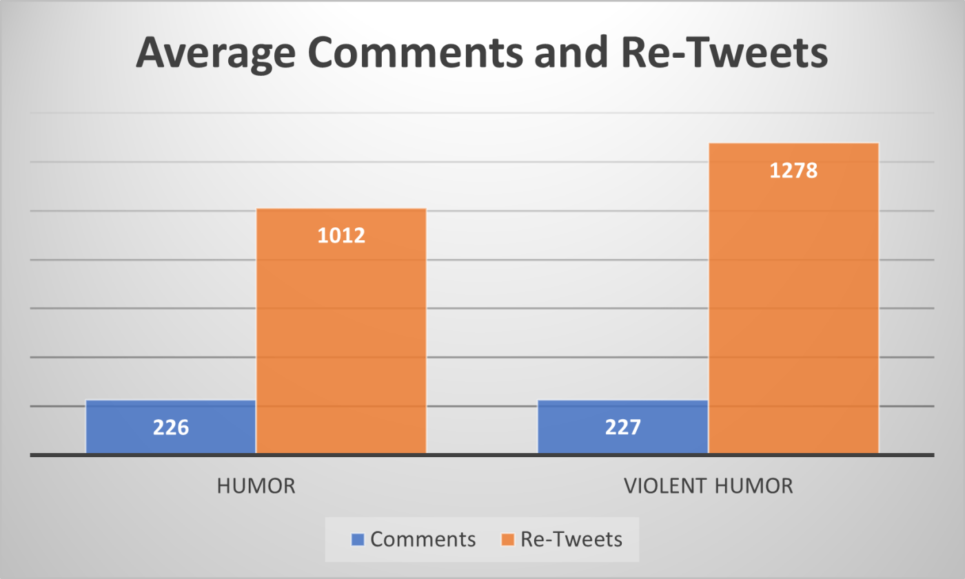 The results of this modest analysis indicate that humor may indeed be an effective digital diplomacy strategy. Twitter users were more likely to engage with humorous tweets and more likely to comment on them. In this sense, humor may enable actors to “burst” their algorithmic bubbles and reach new publics. The benefits of “violent humor” are more modest. Violent tweets tend to garner higher numbers of re-tweets, a small benefit when compared to the negative consequences of using “violent humor” which includes the normalization of war and a growing societal acceptance of violence.