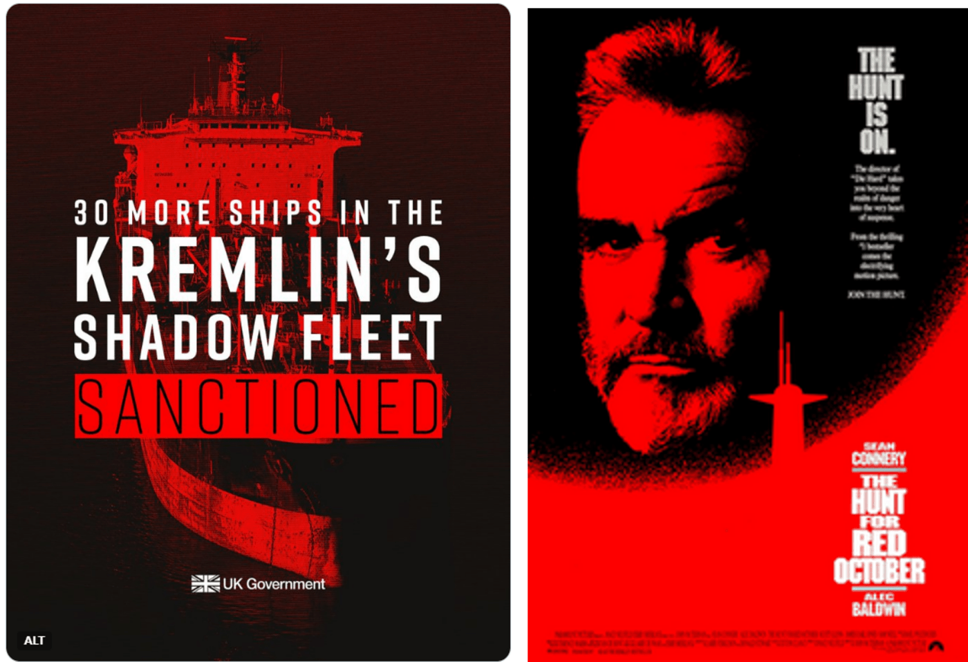 Other times nostalgia is used in domestic digital diplomacy or when diplomats target their own citizenry. Consider for instance the tweet below published by the UK’s Foreign Office announcing sanctions on Russia’s “Shadow Fleet”. Both the wording, and the visual, seem plucked from 1980s or 90s spy dramas centered on the Cold War. This tweet recreates a world of shadows in which “spooks” or spies operate far from prying eyes. The visual resonance between the FCO’s image, and the poster for the Cold War film The Hunt for Red October is remarkable yet also logical if analyzed through the prism of domestic digital diplomacy. British diplomats may be attempting to rally domestic support for the continued opposition to Russia by insinuating that today’s Russia is no different then yesterday’s Russia and that the current struggle against Russia is merely the continuation of the Cold War by other means. Russia is a known foe, and from a nostalgic perspective, the continued hostilities with Russia offer a sense of assurance through continuity and through linking the familiar and binary world of yesteryear with todays’ world. In this way, the FCO’s tweet reduced the complexity of present-day Wars and Crises. The War in Ukraine is simply another stage in the historic struggle against a “Red Russia”, red being the dominant color in the image below.
